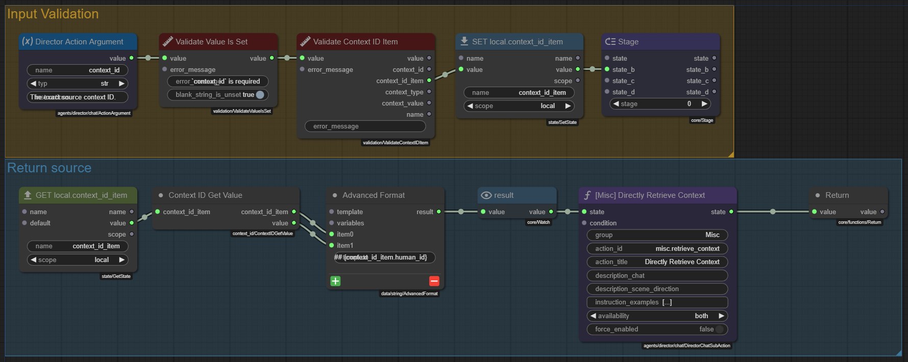 Connect Director Chat Sub Action nodes to define specific behaviors within your action