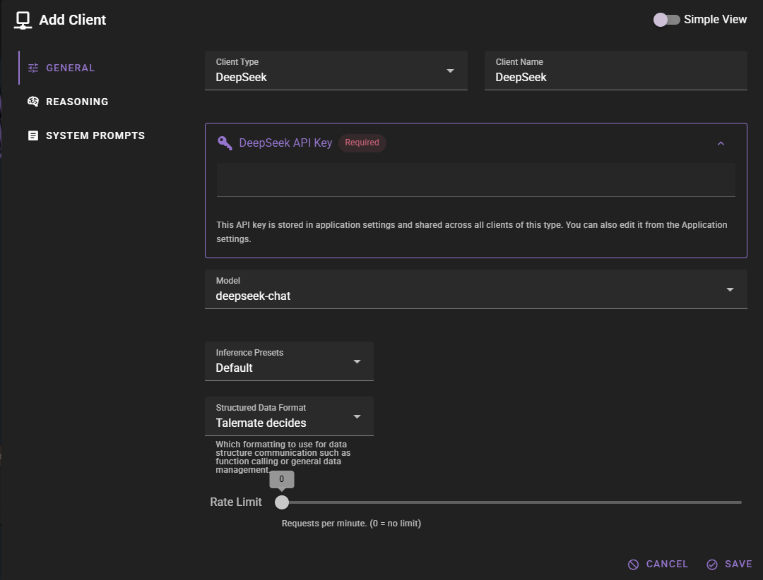 If you want to add a DeepSeek client, change the Client Type to DeepSeek.