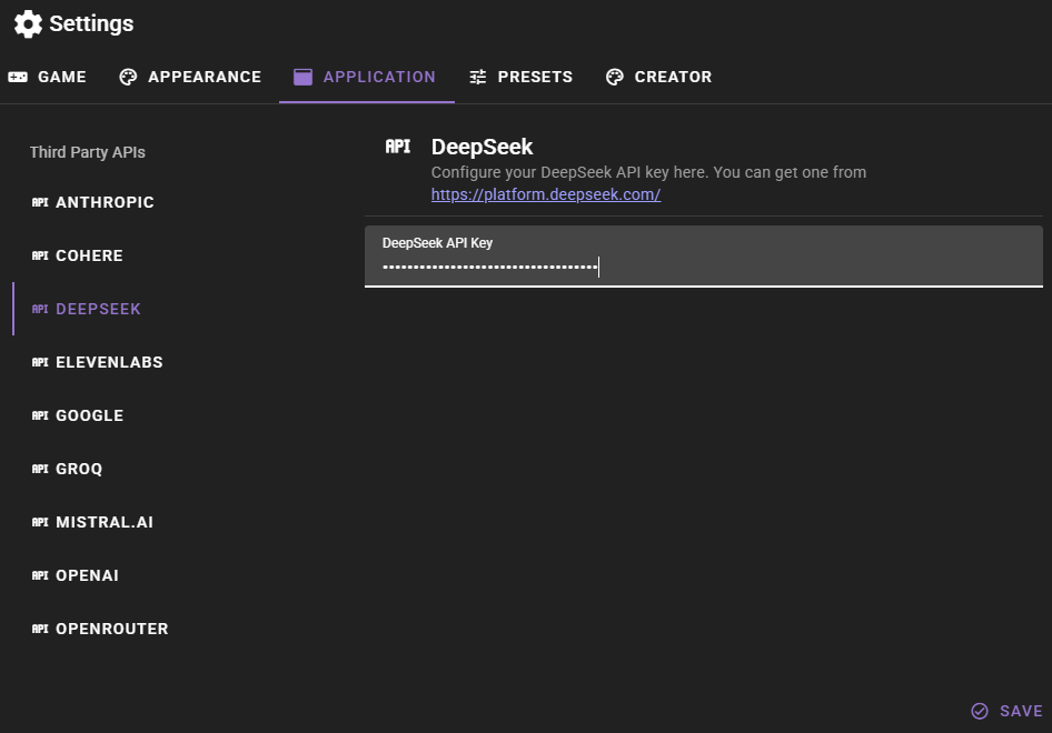 Click the SET API KEY button. This will open the API settings window where you can add your DeepSeek API key.