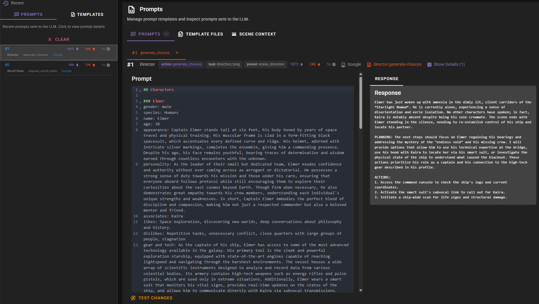 The Prompt Manager is a new unified interface for managing prompt templates, inspecting sent prompts, and reviewing scene context.